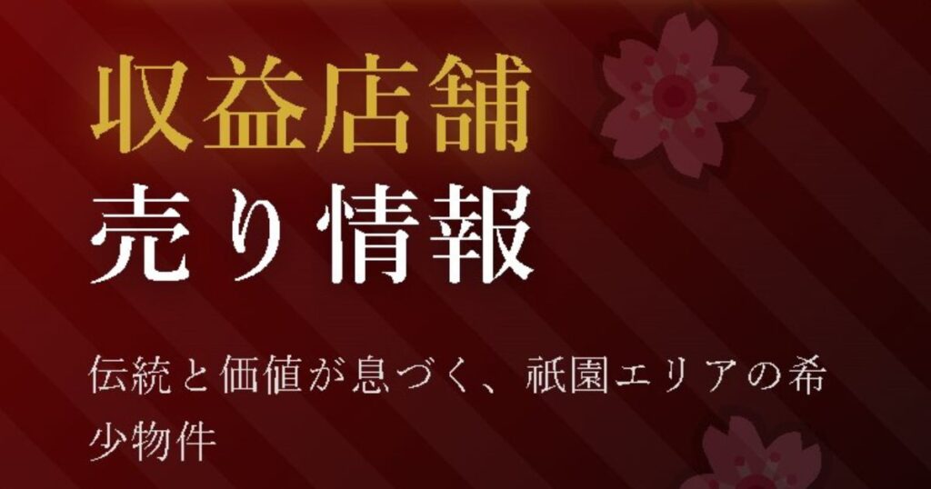 【京都・祇園の収益物件】年利3.1%(想定)!高需要エリアの「オーナーチェンジ」店舗:売り情報